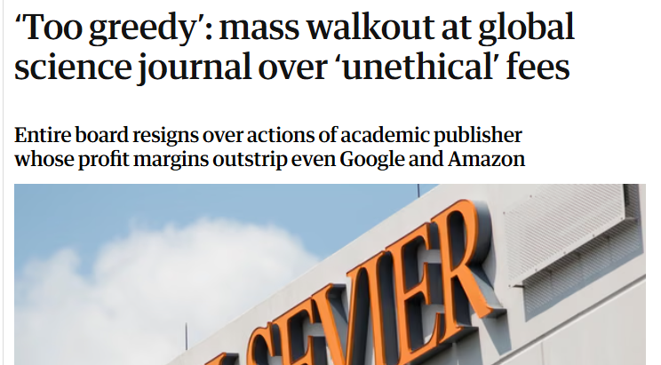 截至2025年初,全球已发生20起学术期刊编辑集体辞职事件,矛头直指出版商的暴利模式。