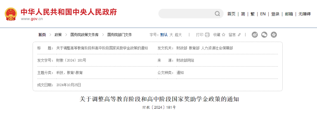 随着国家综合实力显著增强和对教育的重视程度不断提升,奖助学金的标准也大大提高,覆盖范围更广。2024年10月28日,财政部、教育部、人力资源社会保障部印发了《关于调整高等教育阶段和高中阶段国家奖助学金政策的通知》,明确提出提高奖助学金标准,部分资助名额翻倍。除了增加国家奖学金名额、提高奖励标准外,还提到,从2025年起,提高中央高校研究生学业奖学金中央财政支持标准。其中,硕士生由每生每年8000元提高到10000元,博士生由每生每年10000元提高到12000元。