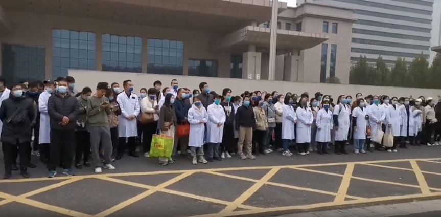 据悉因为“抗疫晋升优待政策的执行”问题而引发大家的不满导致举行的集体抗议,一线抗疫人员晋职称走绿色通道,今年抗疫人员却是按差额比例分配名额,致使许多人都无法晋升!
