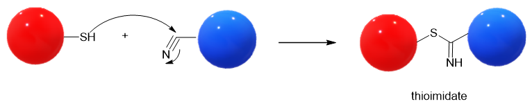 抗病毒肽类药物的研发前沿1. 抗新冠病毒药物新冠疫情爆发后,肽类类似物疗法的代表性药物——Paxlovid成为全球关注的焦点。Paxlovid包含两种活性成分:奈玛特韦(nirmatrelvir)利托那韦(ritonavir)。其中,奈玛特韦是一种Mpro蛋白酶抑制剂,能够通过与病毒蛋白结合抑制其复制。而利托那韦则作为药代动力学增强剂,延长了奈玛特韦的半衰期和药物暴露时间。图9. 硫醇化合物与腈化合物反应生成硫亚胺酸盐