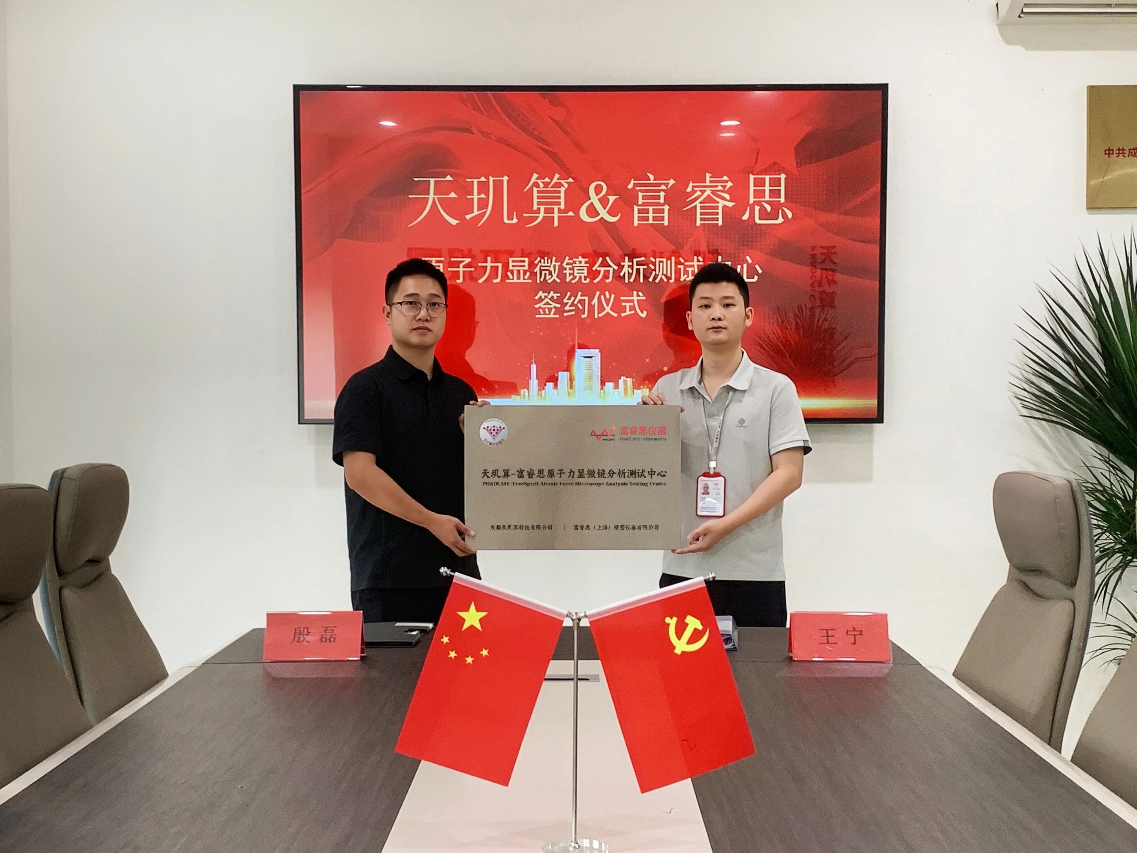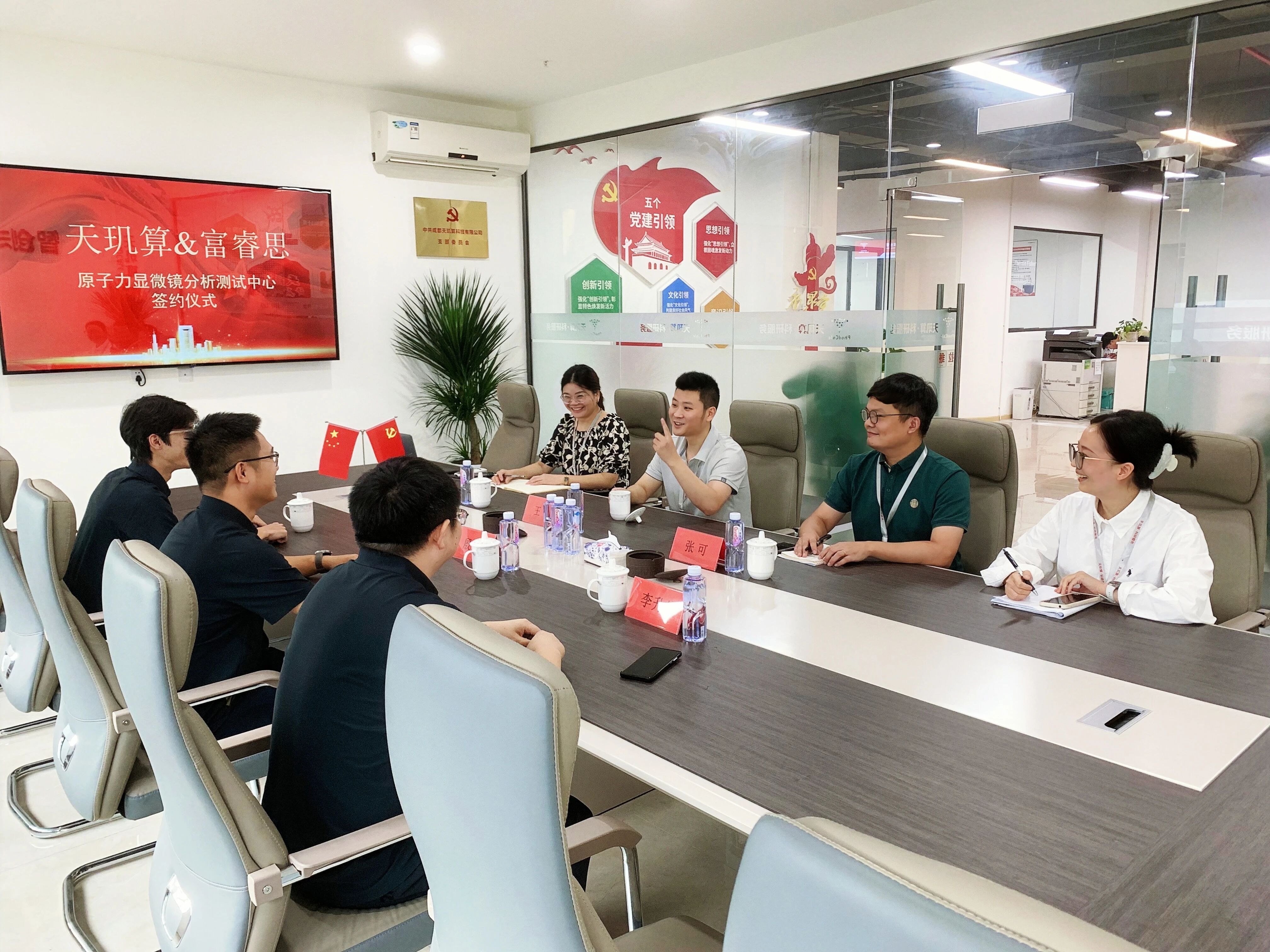 昨日,天玑算又迎来重磅大事件——天玑算&富睿思原子力显微镜(AFM)分析测试中心签约仪式圆满举行。  富睿思团队代表殷磊一行人昨日到访天玑算成都总部,与天玑算创始人兼 CEO 王宁博士共同出席仪式,标志着双方在高端精密检测领域的深度合作正式落地,为科研创新生态注入新动能。 01 签约现场: 共话行业痛点,锚定合作新方向 仪式现场,王宁博士与富睿思团队代表围绕实验设备与技术服务等核心议题展开深度对话。 双方一致认为,当前我国在部分前沿科研领域发展迅猛,但高端检测设备仍面临“检测资源分散、服务响应不及时”等痛点,成为制约科研效率与产业升级的瓶颈。